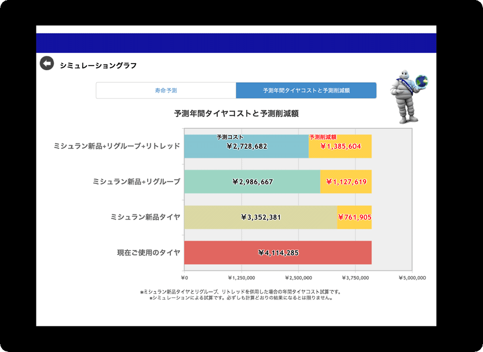 - 試算ツールをタイヤ取扱店に配信しタブレット上でコストメリットの算出が可能に