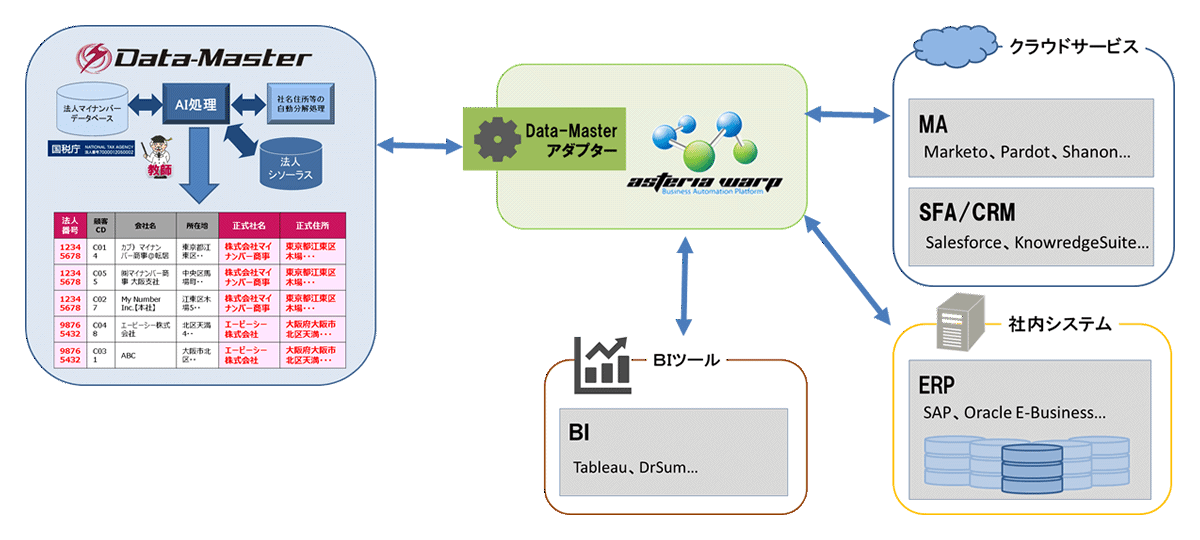 企業データのAIマッチングを行うクラウドサービス「Data-Master01」とMAやSFA等の各種システムとの自動連携を実現し、アカウントベースドマーケティング(ABM)を実現する統合データマネジメント基盤の構築が可能に!